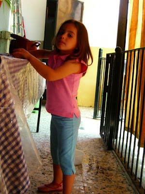 Ayer nos toco, la recogida -refinitiva- de la casa del Rocio. Mi amigo Angel tiene un cuartillo en la azotea, donde cabe un elefante. Cuantas cosas metimos en ese cuarto,¡ Dios mio !. Pepe, nos coció unas gambas y cigalitas que le salieron riquisimas, pero empleo algún truco, por que yo lo vi con un móvil en la mano, algo raro había allí, ya me enterare y os lo cuento. ¿ Estará ya en el mercado un móvil para cocer gambas ?. No me extraña nada, esta ciencia adelantan que es una barbaridad y los de Telefónica por ganar dinero, inventaran lo que sea. Lucia se propuso limpiar a fondo la casa y ciertamente que lo hizo, además como es pequeñita y muy joven , llega a sitios que los mayores ya tenemos prohibido, entienda se las partes bajas de las mesa y las sillas. Manuel, mi Pepito chico, trinco el carrito de Lucia por banda y le pego unas carreras al muñeco que esta dentro del carro, que el pobre salio blanquito. Y el muñeco había pasado un rocio, - rebolcao- , osea que estaba un poco marron. La comida fue muy agradable, buena y la compañía excelente y como fin del viaje, nos marchamos hacia la Virgen y presenciamos el comienzo de una boda. La novia llego en una calesa a la inglesa, con dos magnificas caballos y creo que gobernada por mi amigo Francisquito.